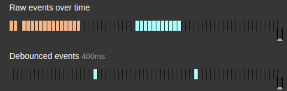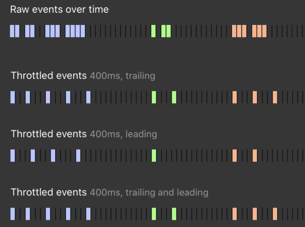 연이어 발생한 이벤트를 하나의 그룹으로 묶어서 처리하는 방식이다. ,delay 기간 중 재 호출 시 기존 호출 무시!